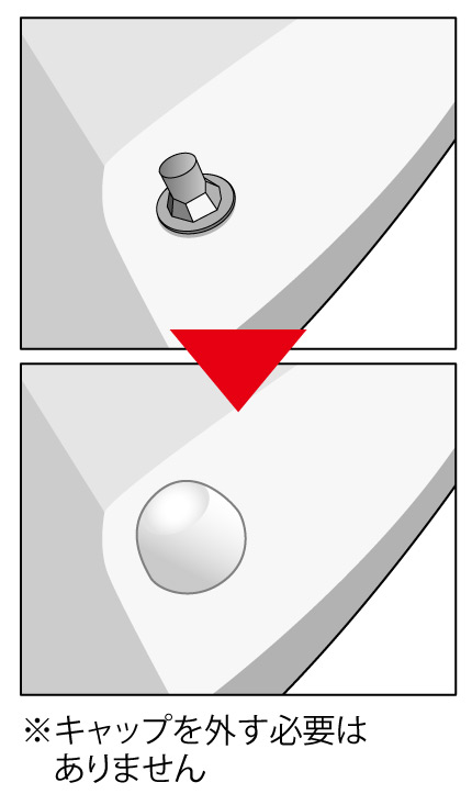 便器には、床に本体を固定するためのネジがあり、設置後はキャップをかぶせてあります。