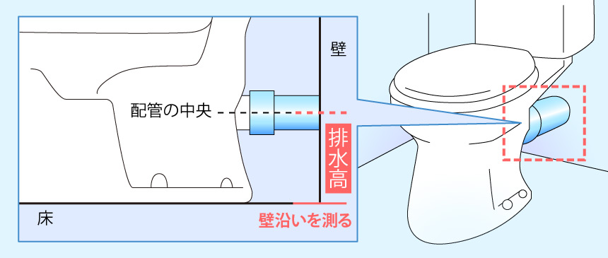 排水高を測る場所は、壁に沿って床から配管中央までの高さを測ります