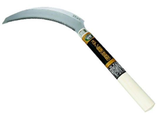 鋸のギザギザした刃がついた鎌で穀物など固い茎の刈取ができます。