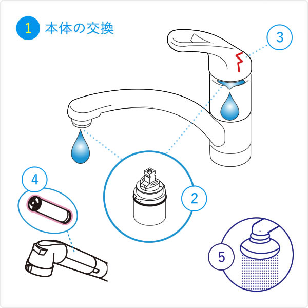 ワンホール混合栓の修理補修