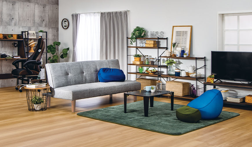 TOP ヴィンテージ&シックリビングルーム インテリア・家具 ヴィンテージ&シック リビングルーム ヴィンテージ調の家具を中心にしたコーディネートです。 ファブリック調がおしゃれなソファベッドは汚れをサッと拭き取れるのでお手入れ簡単。 アイアン調のブラックフレームと木目の棚板がおしゃれなラックはお部屋のアクセントになります。 商品をクリックすると詳細をご覧いただけます。 気になる商品の●をタップすると詳細をご覧いただけます。 机上棚付デスク● パタパタラック● リクライニングチェア● カーテン● ソファ● テーブル①● テーブル②● シェルフ● クッション● ローボード● ※季節品は在庫なくなり次第終了となります。 お部屋の一覧へ戻る