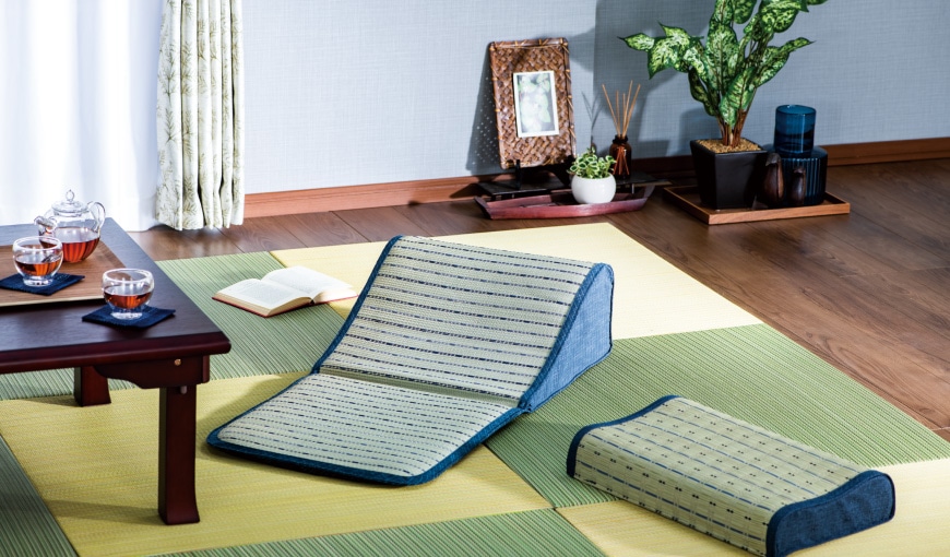 TOP 置き畳コーディネート インテリア・家具 置き畳コーディネート 軽くて持ち運びもラクラク。置くだけ簡単、リビングが和風テイストに。 表面はい草100%、2.5cmの厚みで底付き感のない座り心地。 お気に入りのカラーと配色でお好みのコーディネートを楽しめます。 商品をクリックすると詳細をご覧いただけます。 気になる商品の●をタップすると詳細をご覧いただけます。 座卓● 置き畳①● 置き畳②● 枕● クッション● ※季節品は在庫なくなり次第終了となります。 お部屋の一覧へ戻る