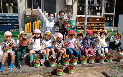 - ●コメリ従業員がボランティアで行う、保育園、幼稚園、小中学校での植栽活動