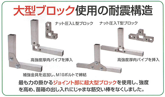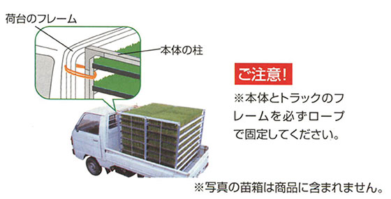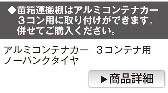 TOP アルミ苗箱収納棚 水平収納式 斜め収納式 耐震構造 苗箱運搬棚 関連特集 一輪車(農業用・運搬用)特集 一輪車(農業用・運搬用)特集では、一輪車やコンテナカー、ハウスカーなどを取り揃えております。