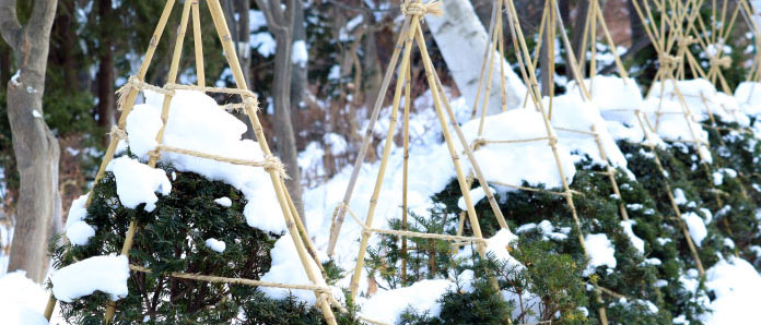 玉縄(わら縄)、むしろ、杭、竹など庭木を守る商品。防雪ネット、冬囲い金物(十手金物)などのお家の防雪対策。その他、凍結対策商品、融雪商品を多数取り揃えました。